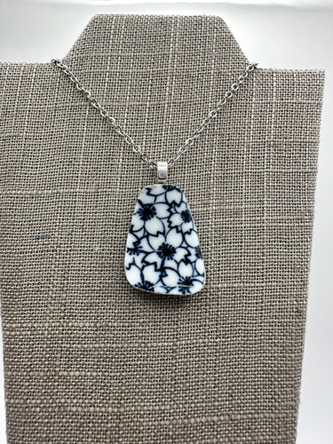 Blue Laser Etched Coin Paper Bead Necklace - 17" with 2" chain extender