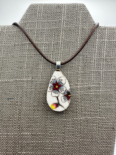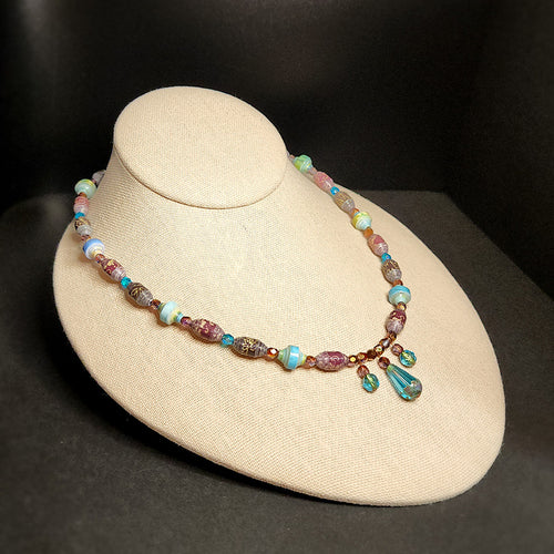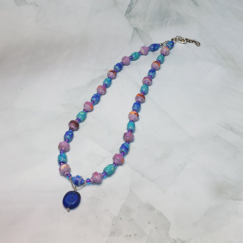 Blue Drop Paper Bead Necklace - 17" with 2" chain extender