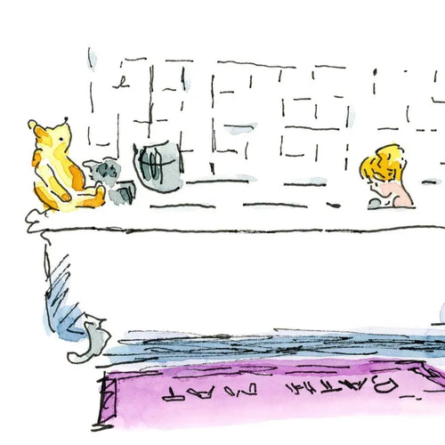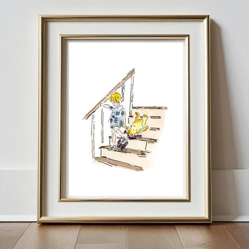 C Robin Pooh Stairs Watercolor Illustration 5x7