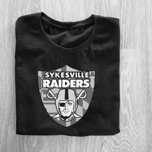 Sykesville Raiders MD emblem- tee, long sleeve, hoodie, crewneck -black