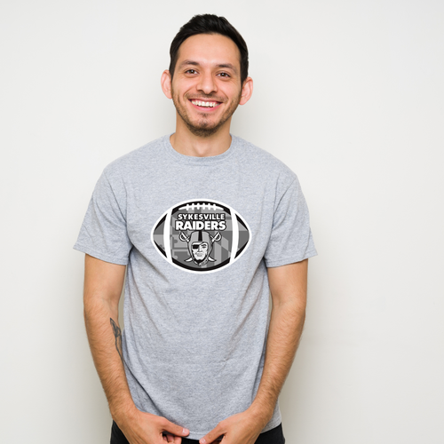 Sykesville Raiders MD emblem- tee, long sleeve, hoodie, crewneck -gray