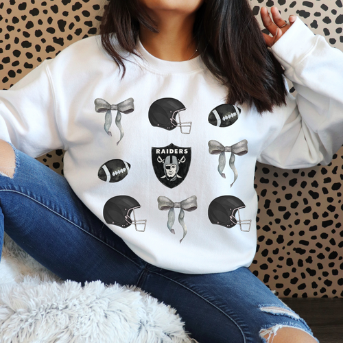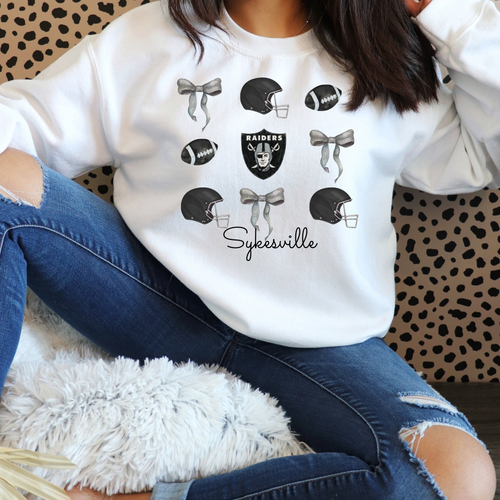 Sykesville Raiders football watercolor bows- tee, long sleeve, hoodie, crewneck-white