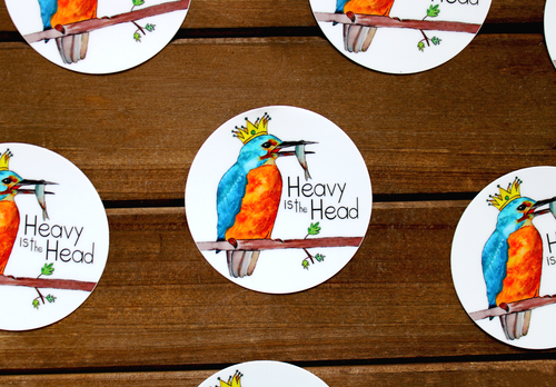 Heavy is the Head -- Kingfisher Royalty Pun Large Sticker