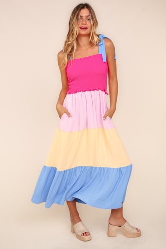 Haptics Smocked Color Block Tiered Cami Dress