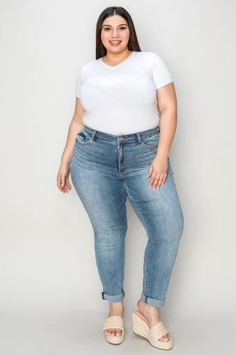 Judy Blue Full Size Cuffed Hem Low Waist Slim Jeans