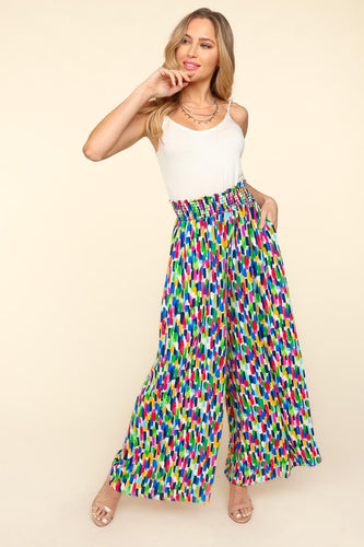 Haptics Smocked Waist Abstract Print Pants