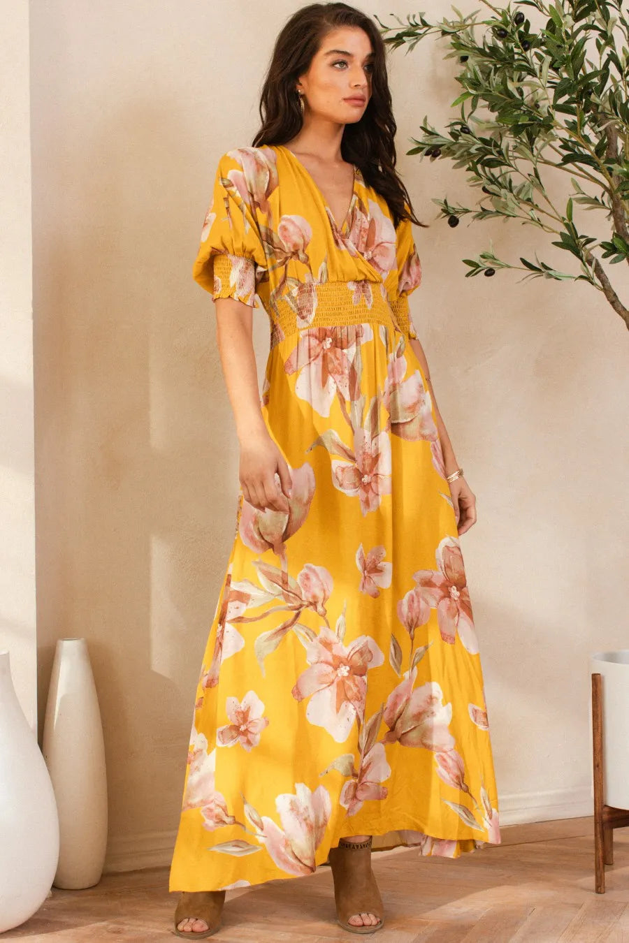 A floral print open tie back maxi dress is a stylish and feminine choice for various occasions. This dress typically features a long length, flowing silhouette, and a floral print design, which adds a touch of elegance and romance. The open tie back detail at the back of the dress adds a flirty and playful element to the overall look. This style is perfect for summer events, beach outings, or garden parties. You can pair it with sandals or wedges and accessorize with delicate jewelry to complete the outfit.