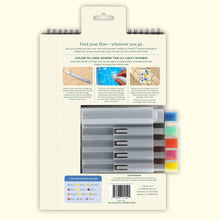 Lifelines FlowArt Pads are guided art meditations designed to help you achieve a calming flow state. Each scene is thoughtfully crafted to encourage repetitive, relaxing movements, promoting mindfulness and reducing stress. UV Art includes 20 meditative scenes and an innovative illuminating marker with 5 interchangeable colors, all in a detachable storage tray. Hover the marker's UV light over the page to reveal hidden, traceable scenes. Experience full immersion into this mesmerizing activity, as the illumination brings captivating detail to life, drops you into your flow, and results in a striking scene. Compact and portable, this pad is perfect for calming your mind on-the-go, unwinding before bed, or taking a work or study break to de-stress.