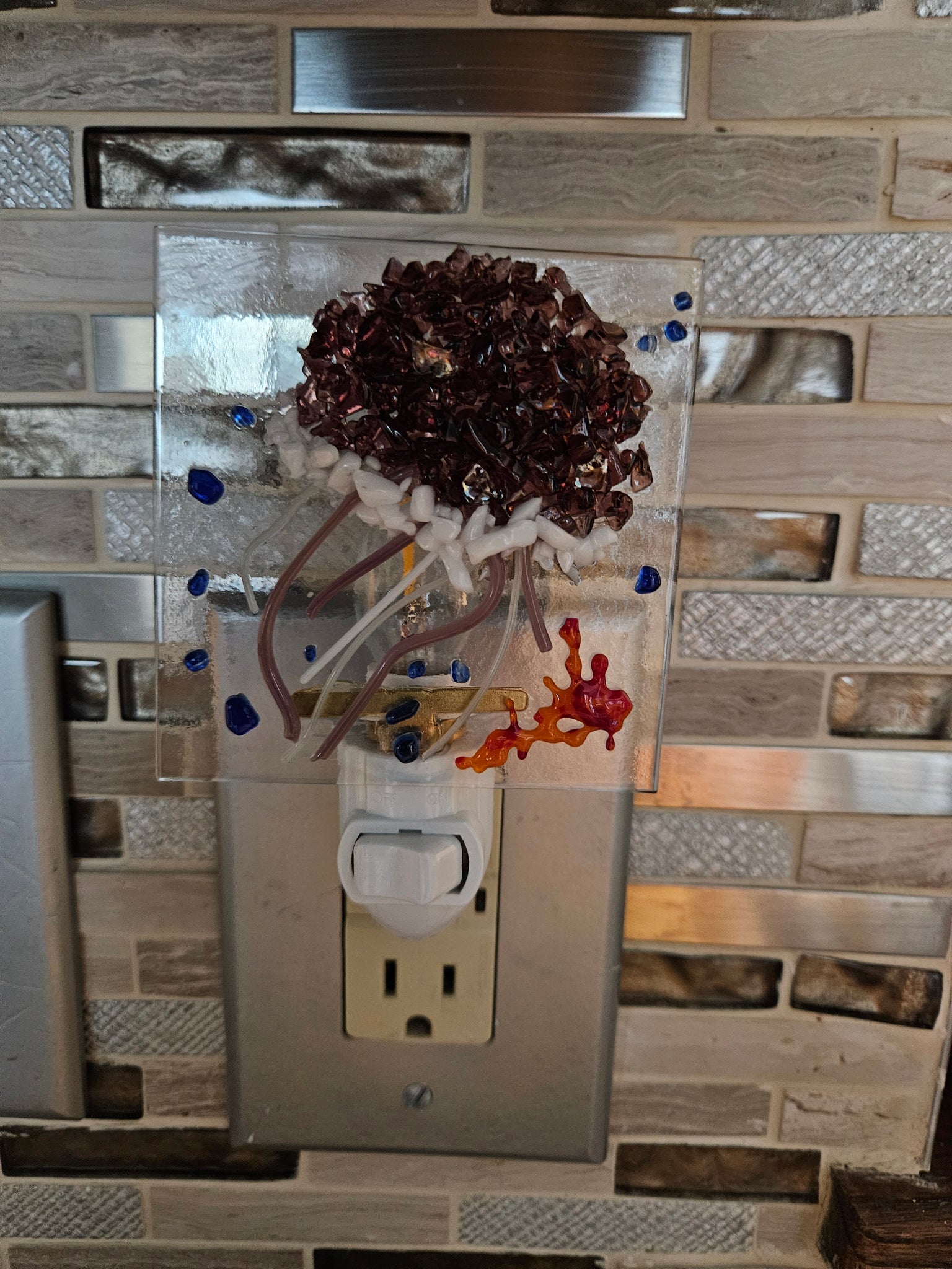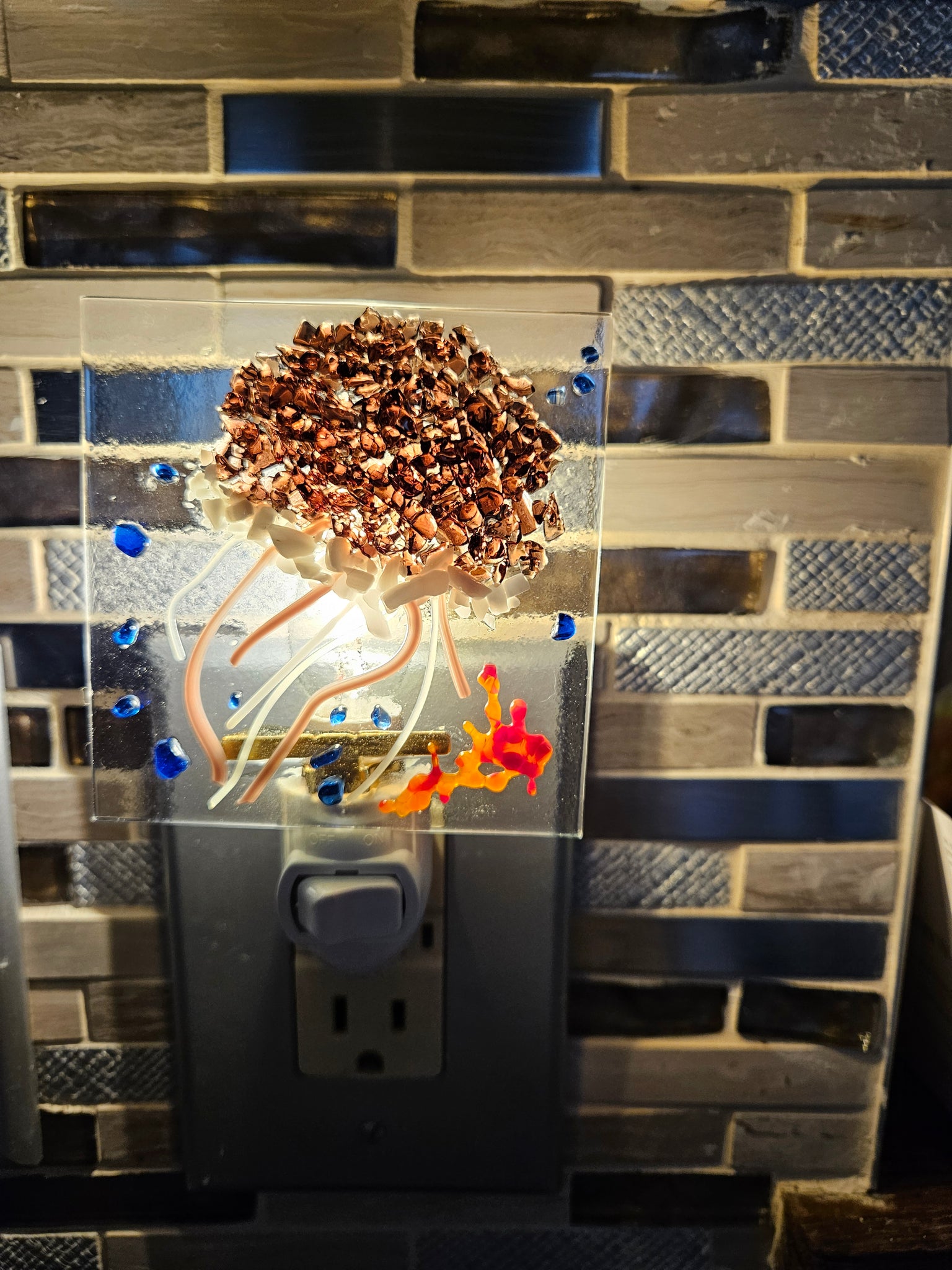 Handmade fused crushed (frit) glass purple jelly fish night light