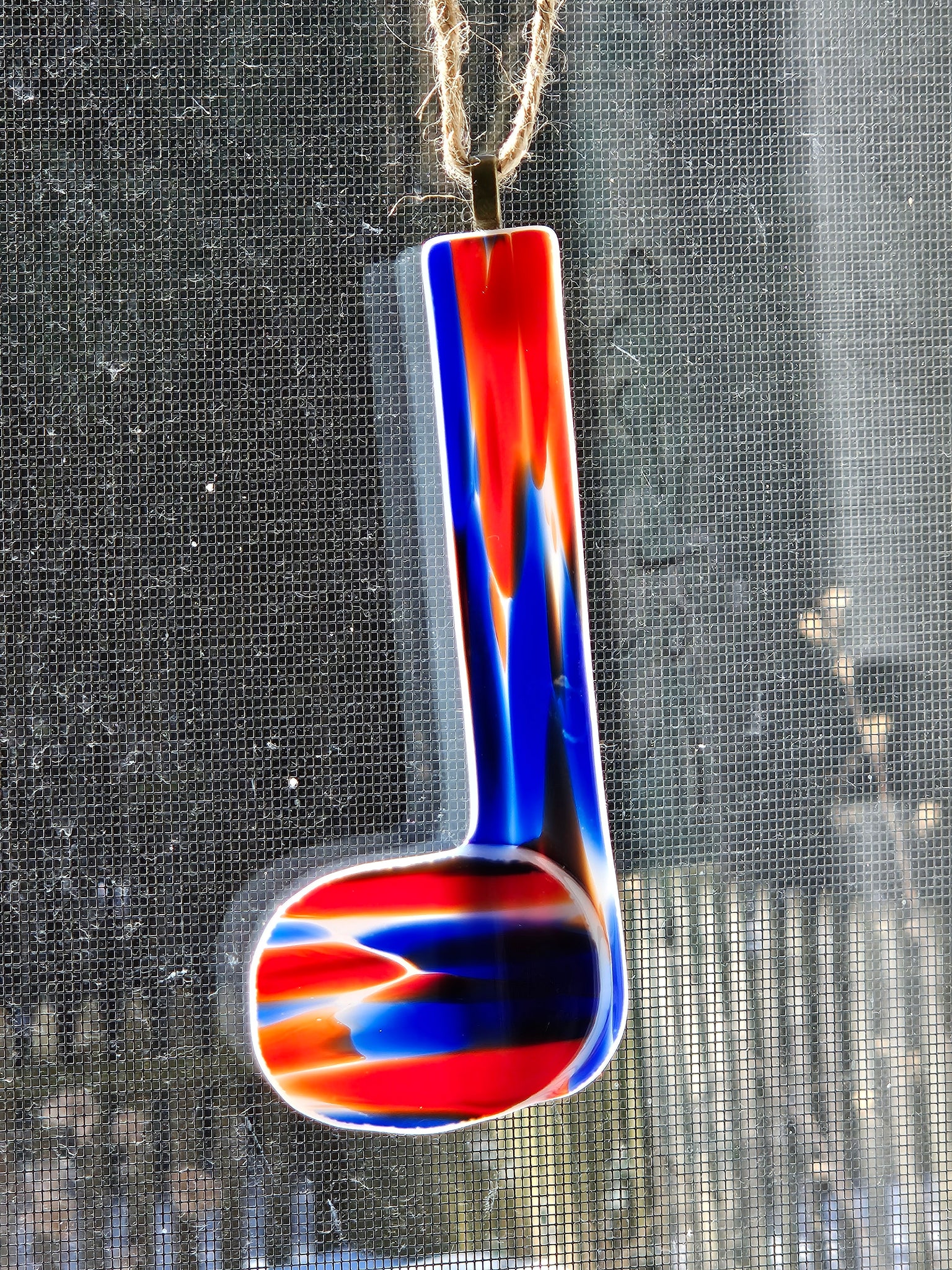 Fused glass music notes. Hand made with fusible glass and fired in a kiln.