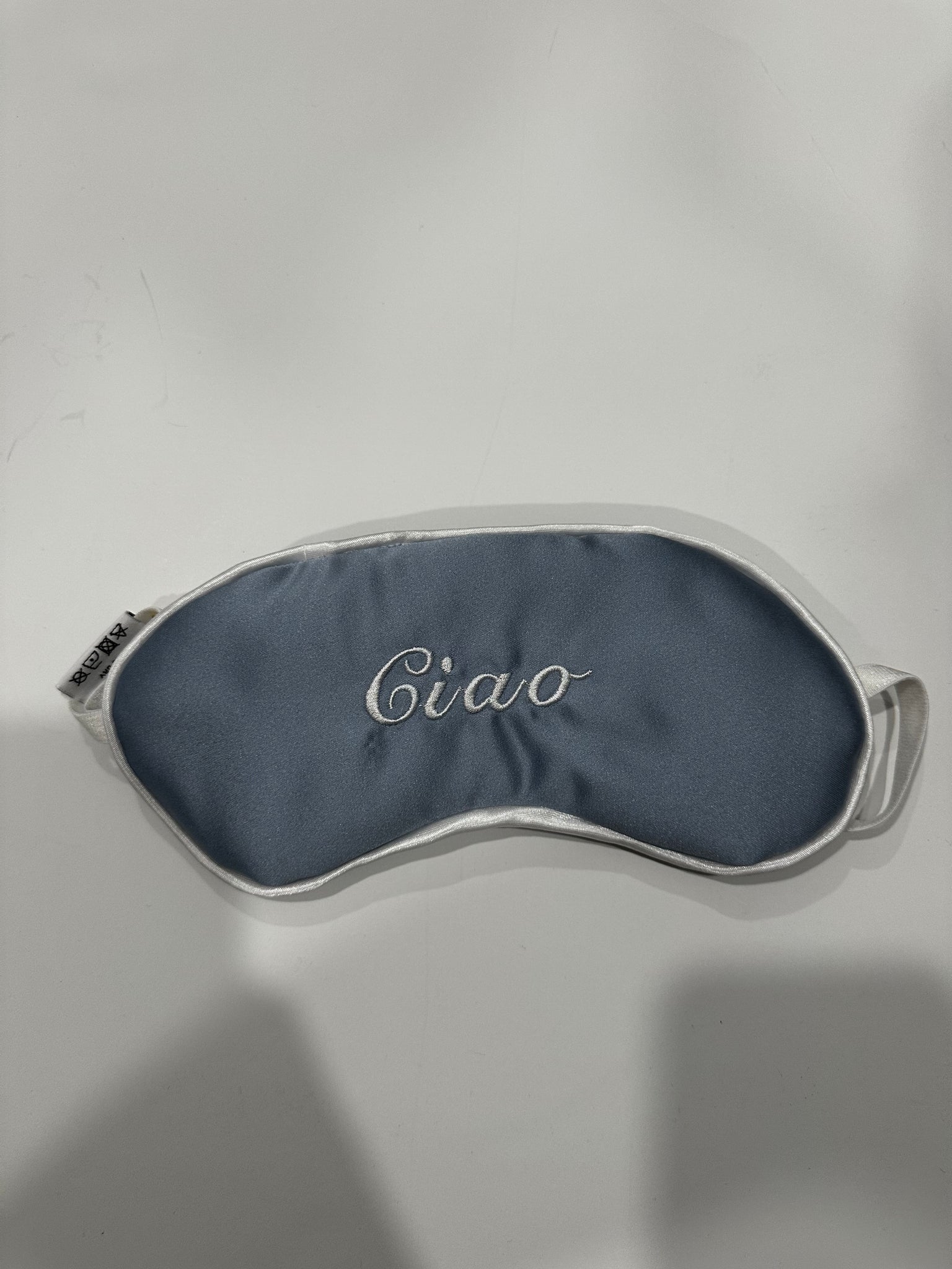 Silk sleep mask with adjustable strap for the perfect fit and extra comfort to help get the most out of your beauty sleep. Sleep masks have comfort batting interior cushioning to keep the light out and have a blackout curtain sleeping experience anywhere anytime. Features embroidered artwork saying, "Ciao" to add some fun to your longest travel days. Perfect for long flights, bright hotel rooms, and more. This sleep mask was designed and handmade by 9th Ave Designs.