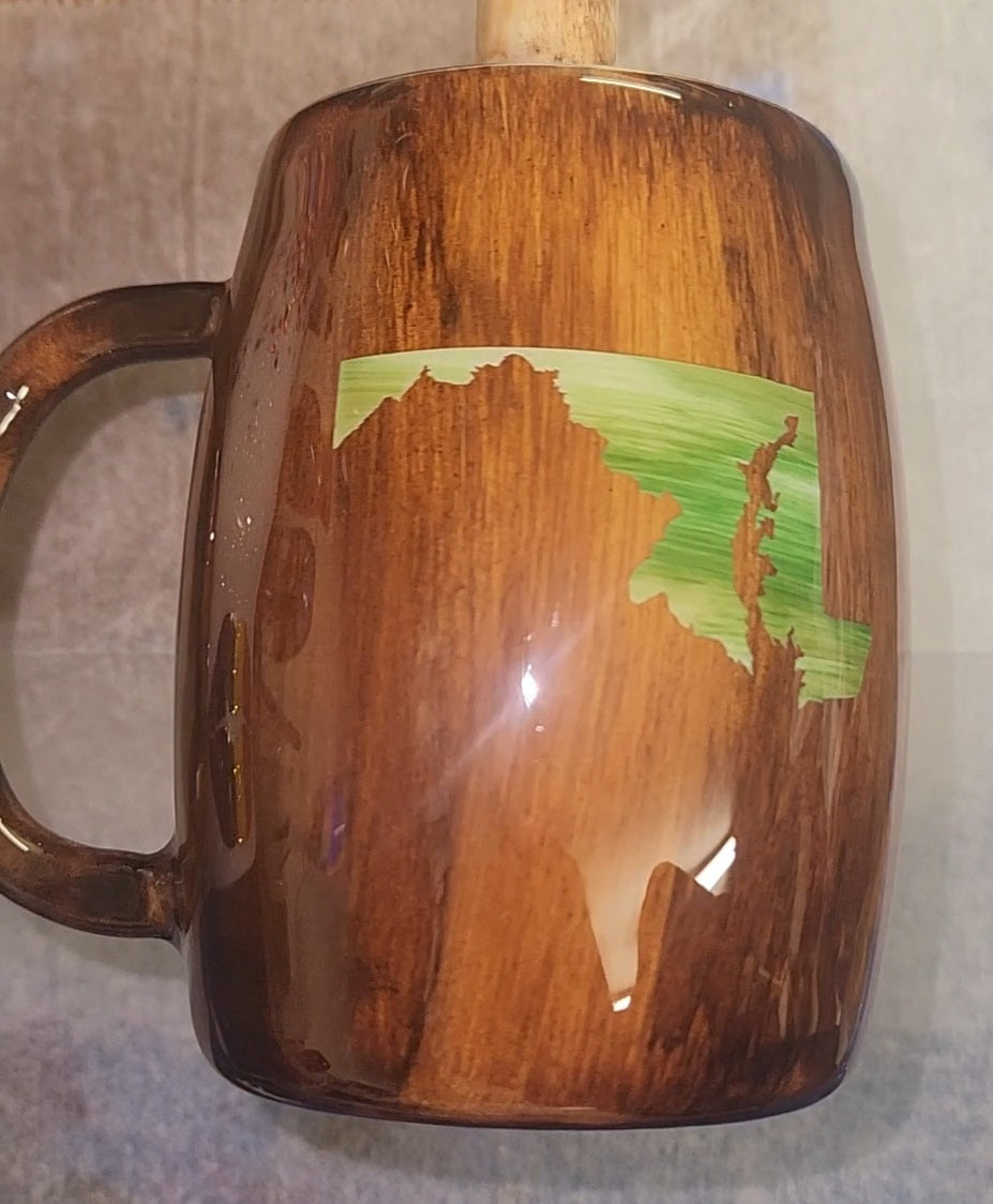 This Maryland Woodgrain 14 oz. double wall vacuum insulated stainless steel mug was hand decorated using paint, alcohol inks, decal, and premium epoxy resin. Comes with a BPA-free lid and care card. Enjoy hot or cold beverages.