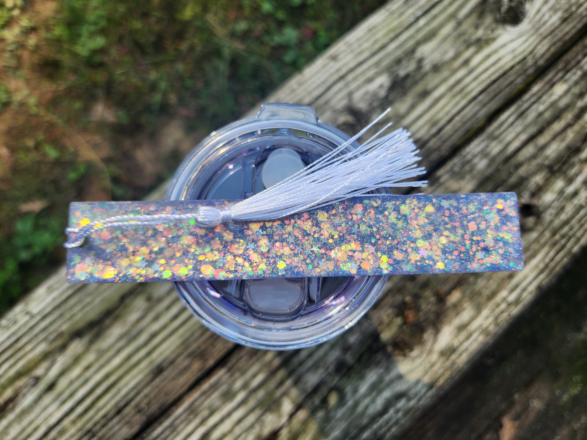 This 24 oz. stainless steel tumbler was hand-decorated using layers of paint, glitter, vinyl decals, glitter, diamond dust, and premium epoxy resin. Comes with a FREE bookmark!