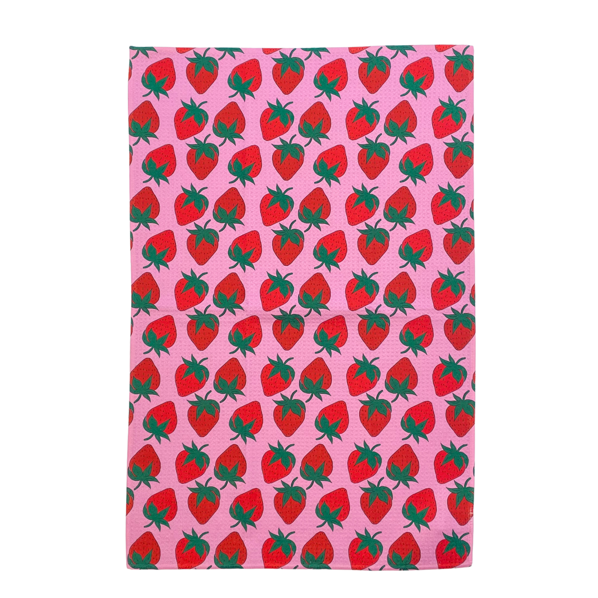 Item: Strawberries Patterned Waffle Kitchen Dish Towel