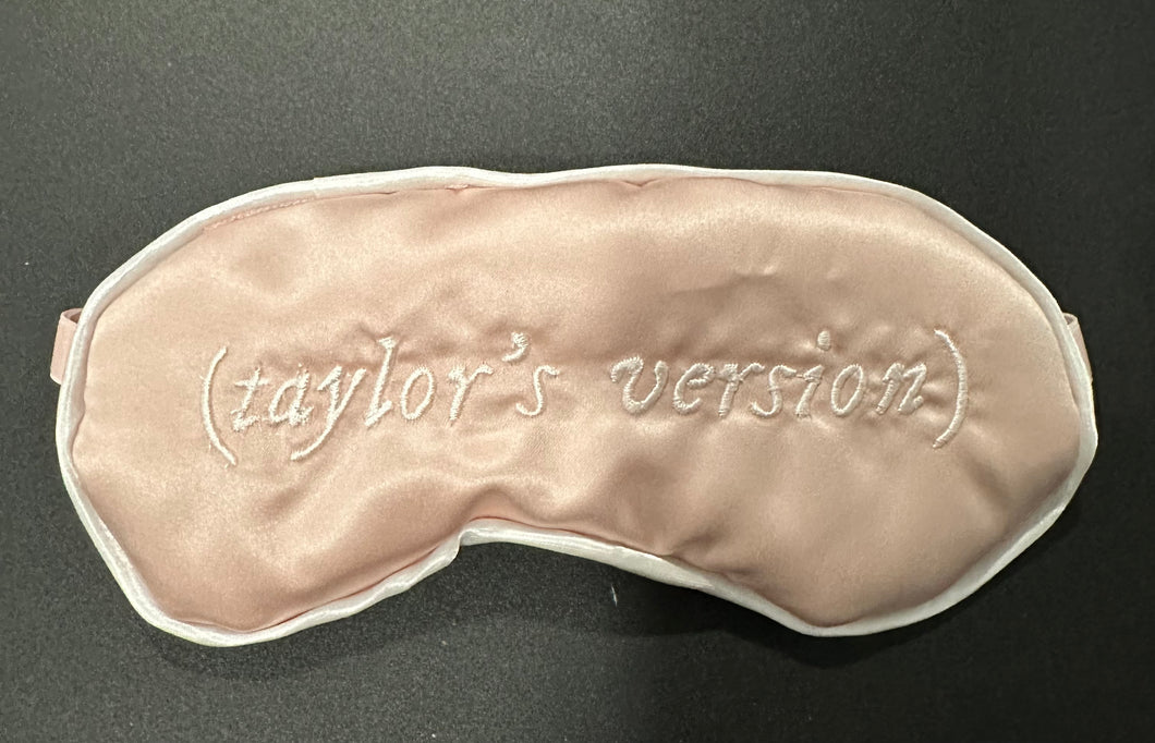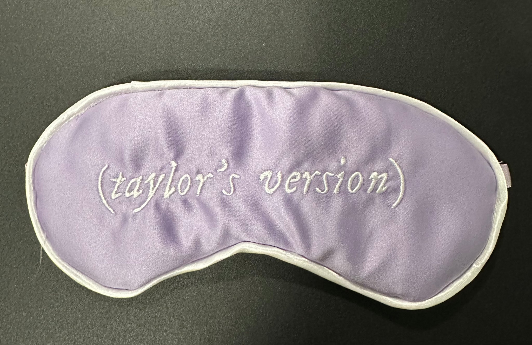 Satin sleep mask with adjustable strap for the perfect fit and extra comfort to help get the most out of your beauty sleep. Sleep masks have comfort batting interior cushioning to keep the light out and have a blackout curtain sleeping experience anywhere anytime. Features embroidered artwork saying, "(Taylor's Version)" to add some fun to your longest travel days. Perfect for long flights, bright hotel rooms, and more. This sleep mask was designed and handmade by 9th Ave Designs.